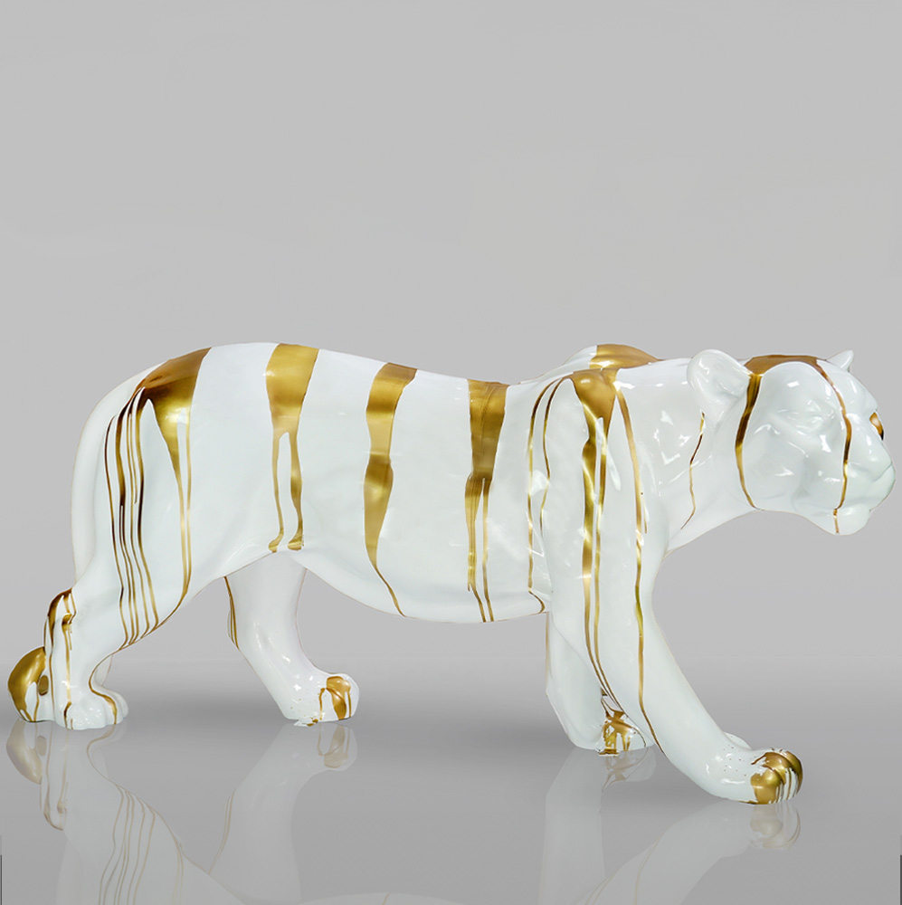 Figurine 3D – Panthère Blanche debout aux dimensions naturelles – finition dorée