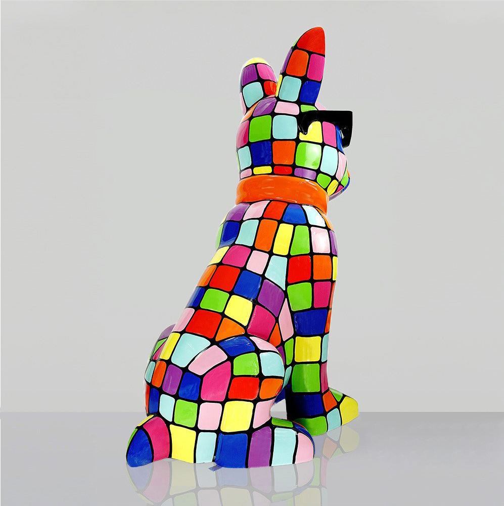 Grande figurine de bouledogue avec cravate et lunettes, laquée – version smartie