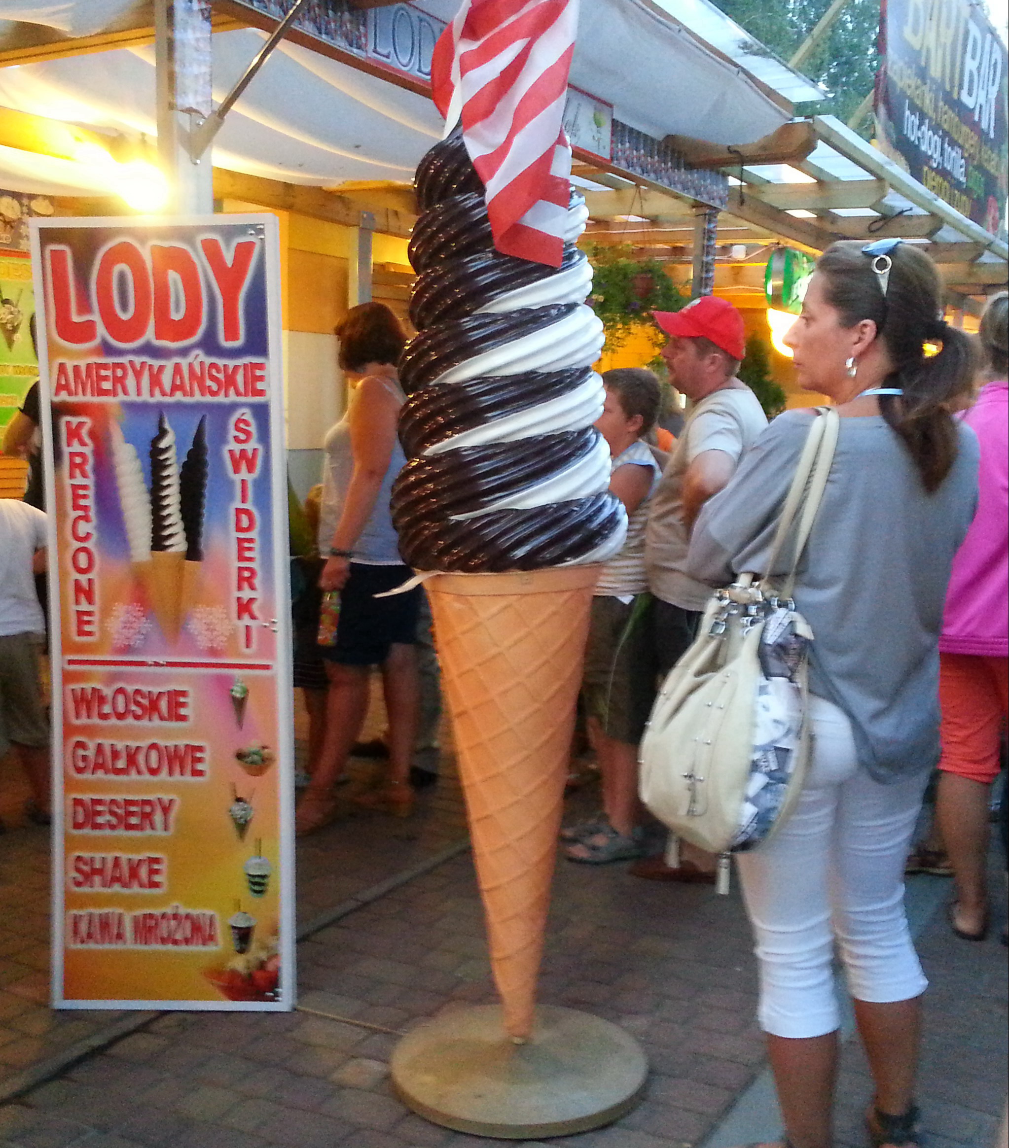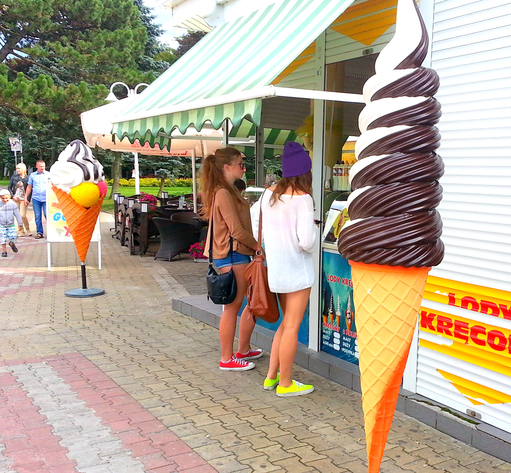 Reklama zewnętrzna w przestrzeni miejskiej. Reklama lodziarni, kawiarni. Reklama nad morzem.