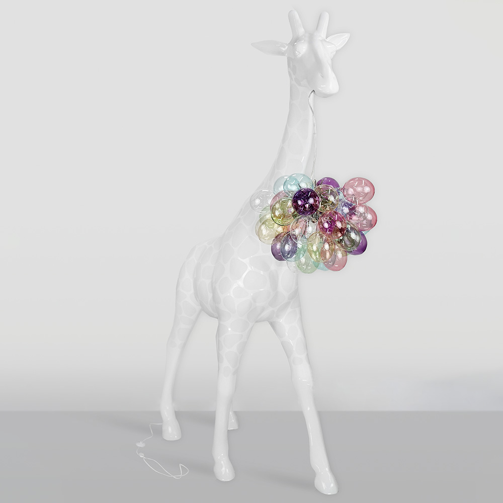 Se tenant à une hauteur impressionnante de 230 cm, cette girafe est idéale pour les grands espaces tels que les bureaux, les galeries, les magasins ou même les salons domestiques. Sa surface blanche et brillante avec des taches délicates ajoute une touche d’élégance et de caractère moderne. De plus, grâce à la possibilité de remplacer le lustre par un autre modèle, l’éclairage peut être adapté aux besoins et préférences individuels.