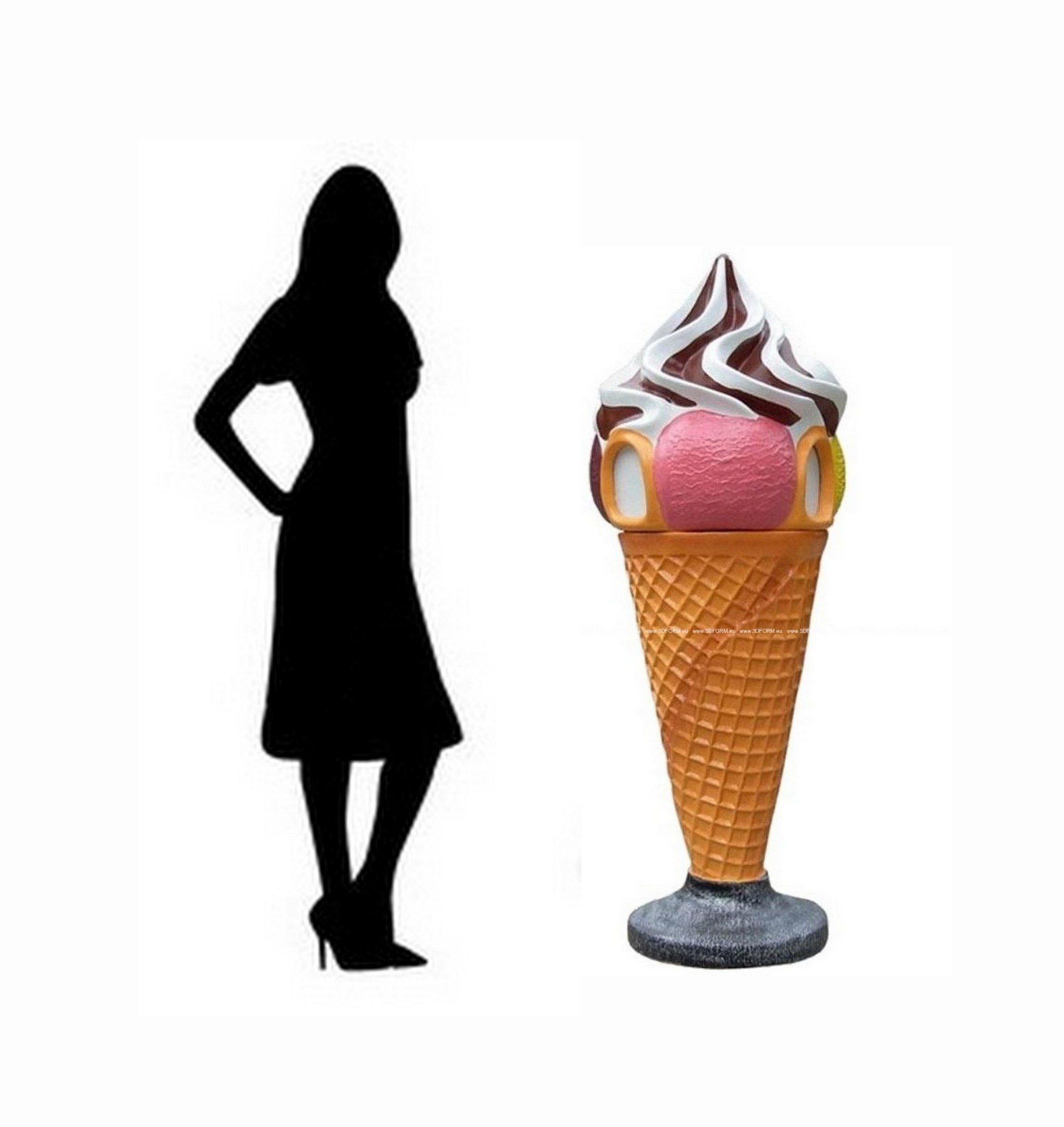 Z imponującymi wymiarami 160 cm wysokości i 65 cm średnicy, nasza figura lodu z polewą jest wystarczająco duża, aby przyciągnąć uwagę, a zarazem na tyle kompaktowa, aby pasować do różnych lokalizacji. Design produktu z dokładnie odwzorowanymi detalami, takimi jak tekstura rożka i lśniąca polewa, sprawia, że jest on nie tylko reklamą, ale prawdziwą artystyczną instalacją.