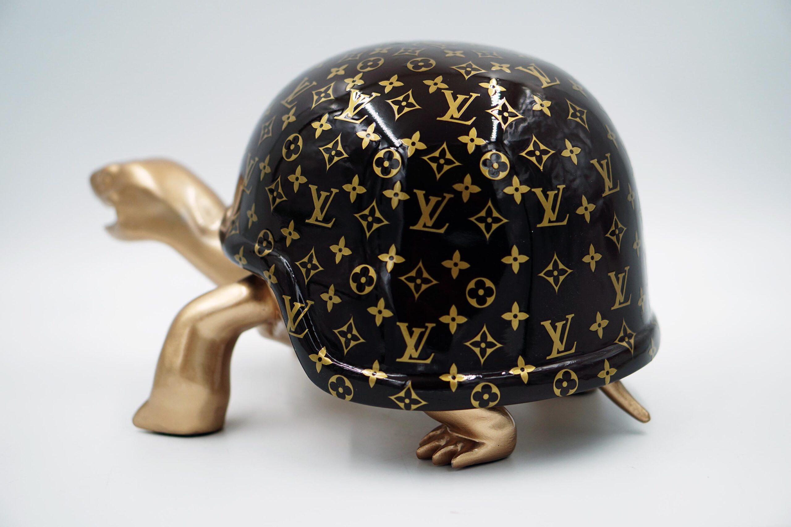 Figurine 3D – Tortue en casque avec monogramme doré L
